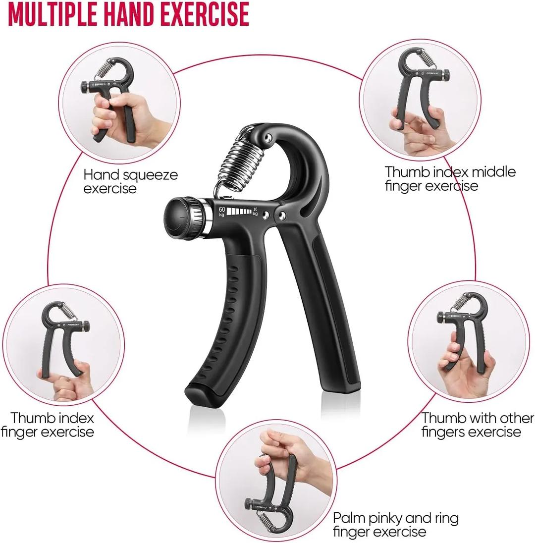 Adjustable hand gripper for building grip strength, endurance, and stress relief. Features a non-slip handle and durable design—suitable for all fitness levels.